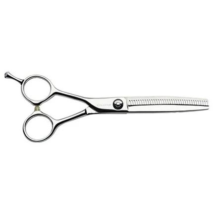 Ciseaux Sculpteur exclusivement pour les gauchers. Acier inox 440C dureté 61 HRC. Lame mobile concave avec affûtage convexe sans angle. Vis micrométrique avec clé de réglage. Butée uréthane vissée. Repose doigt amovible.