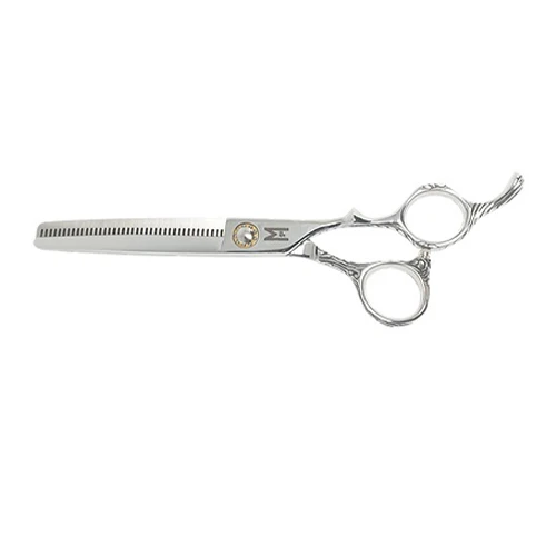 Ces ciseaux ont une taille unique de 6,5, avec roulement à billes. L’acier de ces ciseaux est un acier JAPAN VG10, enrichi en cobalt et molybdène. Il s’agit donc d’un acier inoxydable, résistant à l’usure et à la corrosion.
