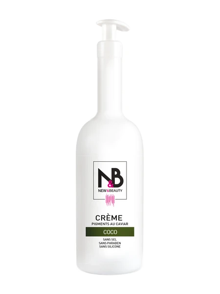 Crème pigmentante coco New & Beauty 1000ml qui neutralise les tons chauds et maintient la richesse des châtains moyens et foncés.