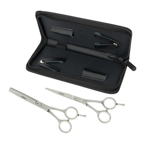 Cette trousse comprend une paire de ciseaux de coupe et un sculpteur. Chacun d’une taille de 5.5. L’acier japonais qui les compose confère aux ciseaux une qualité de coupe extraordinaire.